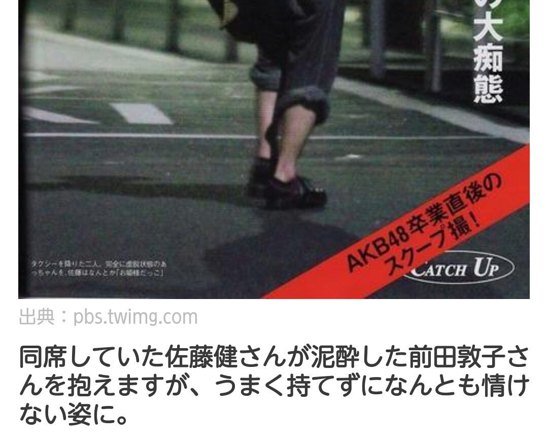 勝地涼さんと18年夏にご結婚されてから、 お子様の関係で微妙にメディアで名前を見ることが増えていますが・・・。 前田敦子と佐藤健は泥酔でやったの?フライデーの真相って? あえて過去のことをほじくるのが我々です。 前田敦子の泥酔の呪い こんにちは。 いつもお読みくださり佐藤健は前田敦子よりも大島優子に興味があった みたいで、 それに嫉妬した前田敦子が部屋を飛び出し、帰宅するという事態になりました。 それを追いかけるように大島優子や他の合コン参加者も帰宅したのですが、納得のいかなかった前田敦子は再び店前田敦子(女優)佐藤健泥酔事件の真相で事務所独立フリー!? 女優の前田敦子(29)が、所属する芸能事務所・太田プロダクションとの 契約を今年12月31日に終了することが22日、分かった。 同日に事務所の公式サイトで発表された。
