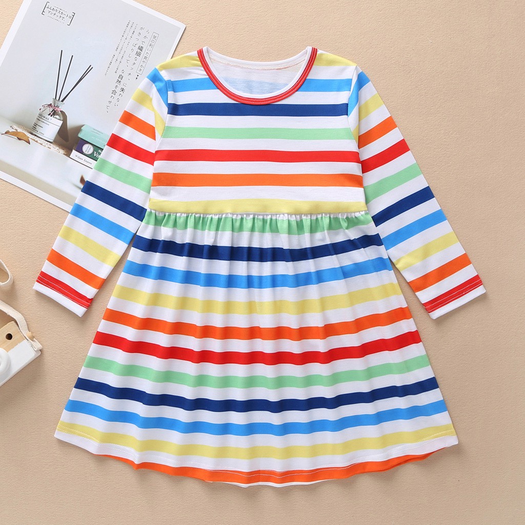 Kawayi Baby Kids Girls Long Sleeve Color Stripe Princess One Piece Dress Autumn Shopee Indonesia